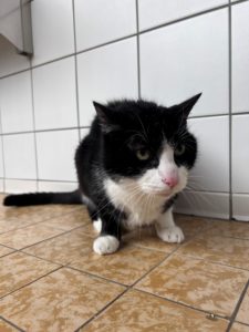 Schenk, un chat européen , noir et blanc, de 13 ans qui a tout compris à la vie : il adore sortir prendre l’air, il est calme, sociable… et surtout, il choisit lui-même ses moments câlins. Bref, c’est un peu le coloc idéal : il ne fait pas la fête toute la nuit, il ne massacre pas les canapés, et il se laisse même manipuler sans sortir ses griffes. Schenk cherche maintenant son petit panier retraite… Si vous voulez un chat zen, indépendant, mais qui viendra vous rappeler qu’il vous aime quand il en aura décidé… c’est lui qu’il vous faut ! »